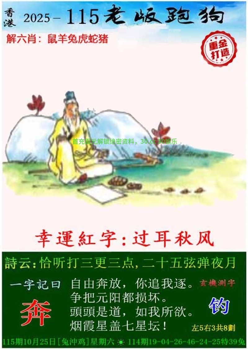 | 114期:七肖中特[羊马虎猴兔牛狗]开:兔39准 |