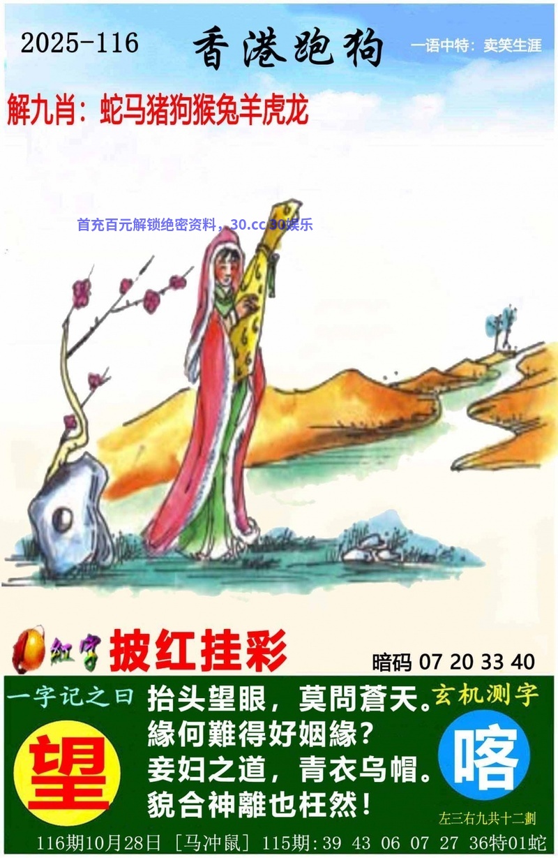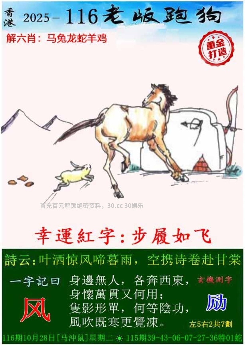 | 116期:七肖中特[虎马蛇兔猪鸡羊]开:马24准 |